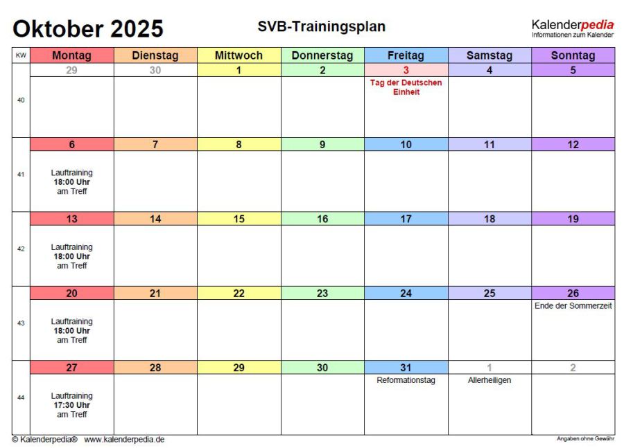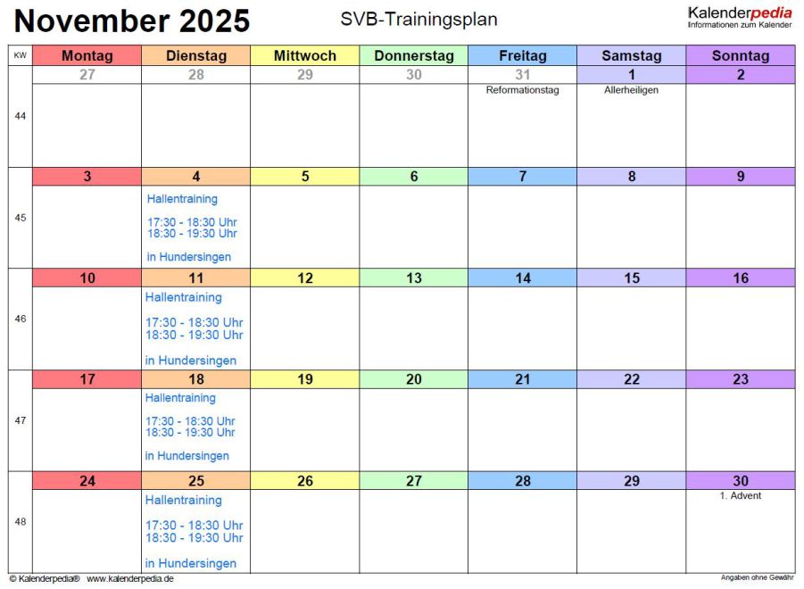 Trainingsplan und Flutlichtbeleuchtungszeiten